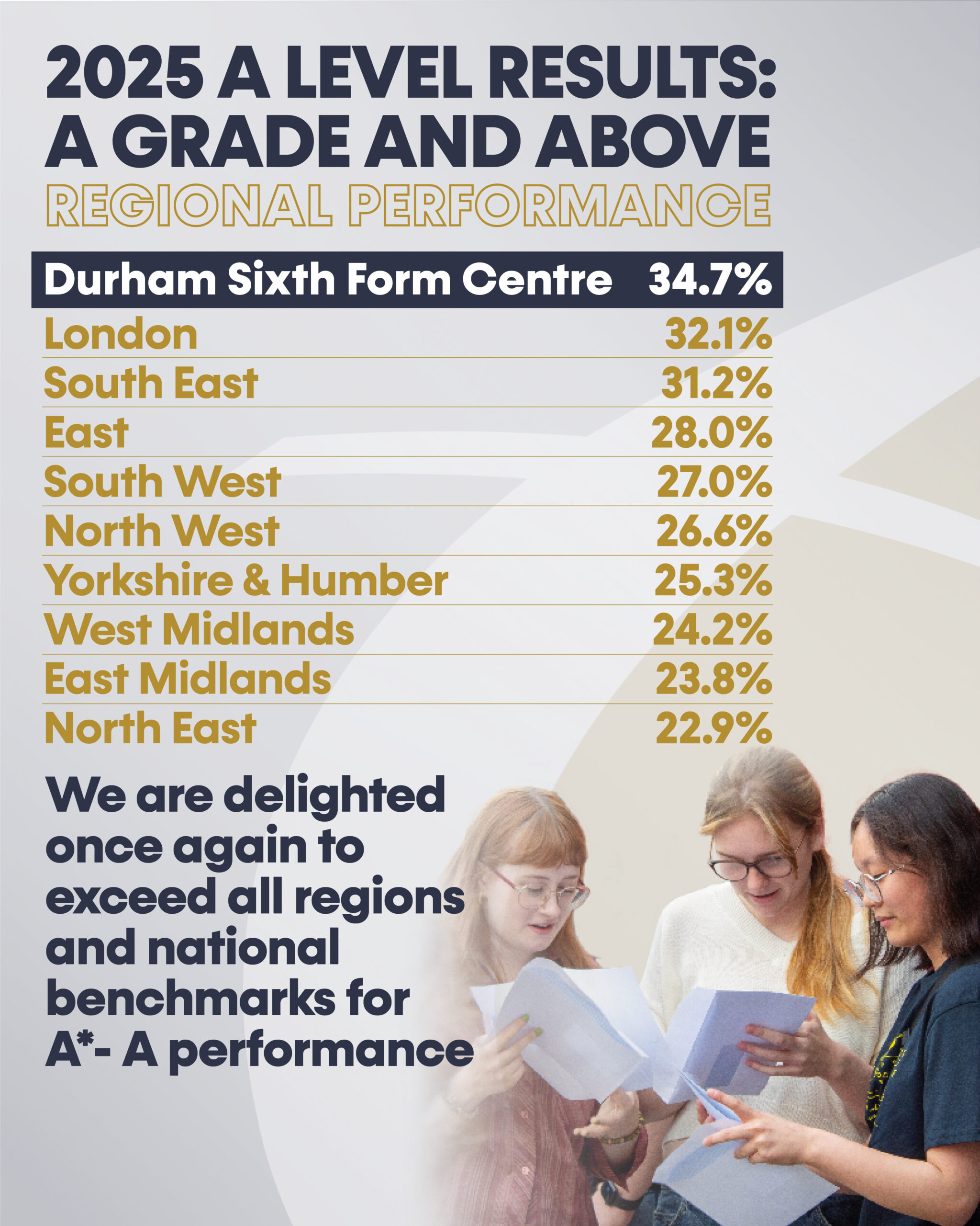 Welcome to Durham Sixth Form Centre. One of the most important decisions you will make is where you continue your education at post-16. We are delighted that you are considering joining Durham Sixth Form Centre. We are a diverse and vibrant community of over 1800 students, who have enrolled with us from over sixty different secondary schools from County Durham and further afield.
