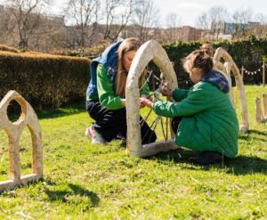 Inspired by the ‘threads in the ground’ (the vast, hidden networks of mycelium), students worked to create sculptures that mirror the interconnectedness of nature. Spending months studying the historic grounds of Crook Hall, drawing inspiration from its medieval manor, terraced gardens, toadlet statues, views of the cathedral and the winding River Wear.