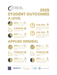 At Durham Sixth Form Centre, we are proud of the achievements of our students, many of whom progress to top universities, higher-level apprenticeships, and successful careers. Our commitment to academic excellence and personalised support enables our learners to reach their full potential. We continually monitor and evaluate student performance to ensure high standards are maintained and improved year on year.